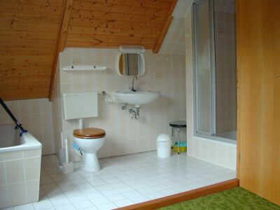 ..geräumiges Bad ..mit Dusche, Wanne und - leider nicht sichtbar - Friesierecke mit Sessel.